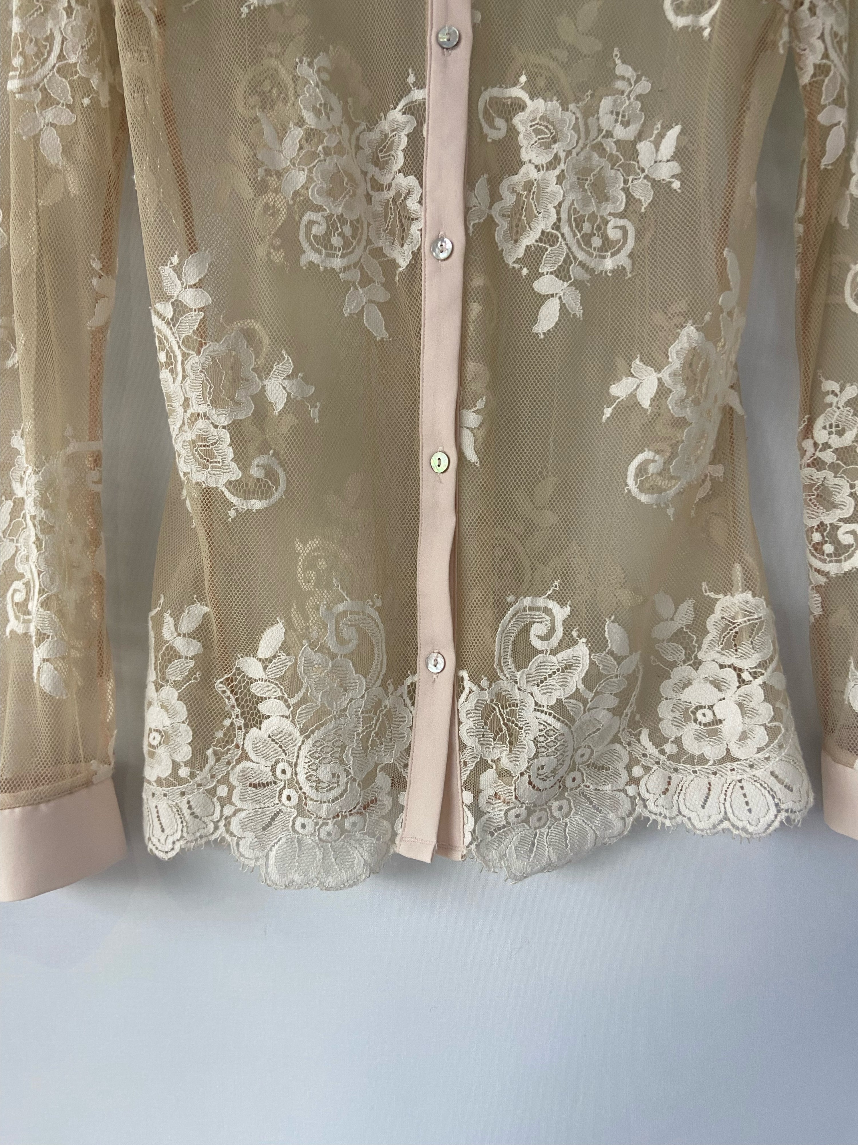Delicate Sheer Lace Button-Up Blouse – Nude Flourish Edition