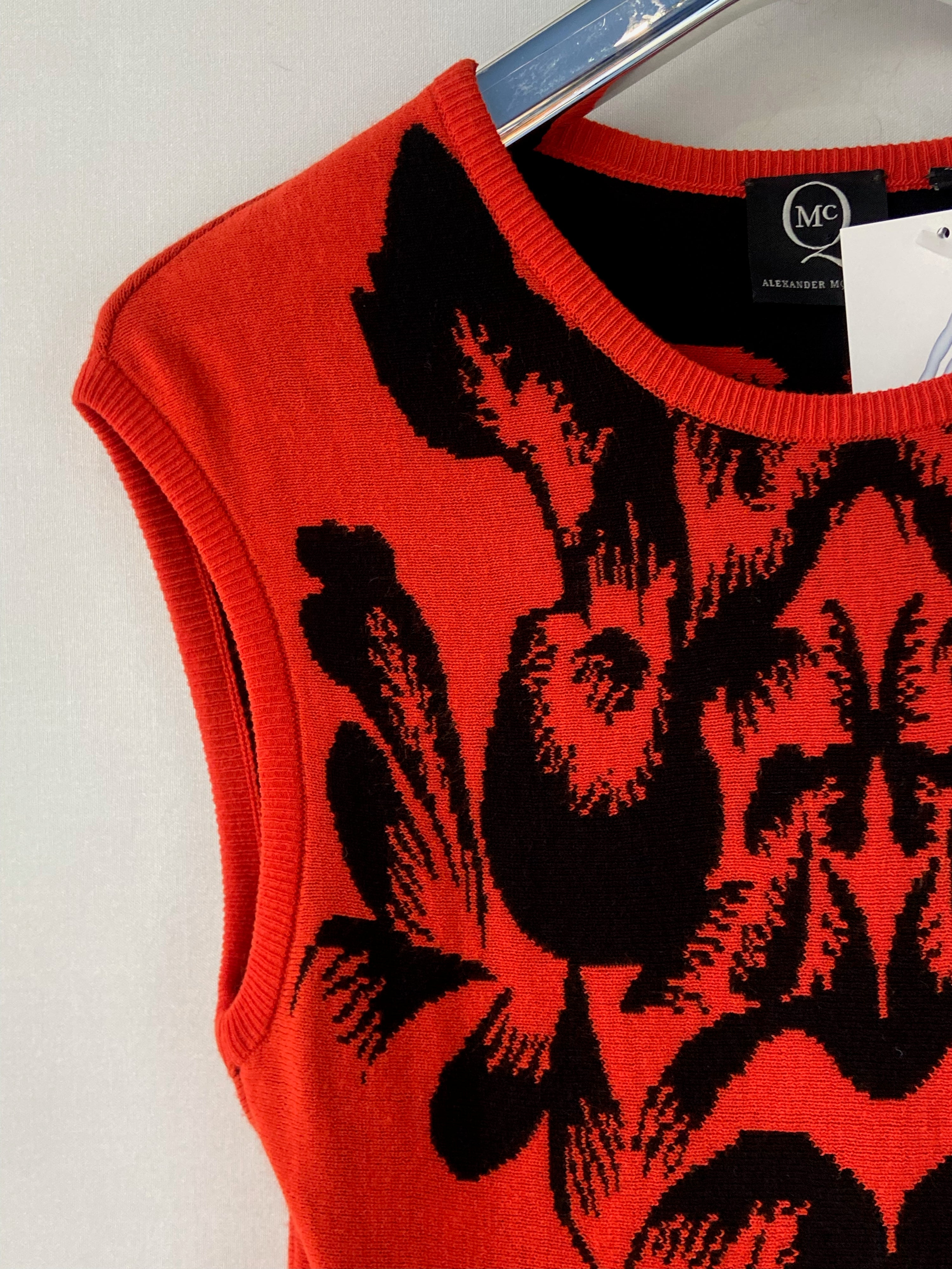 Alexander McQueen Red-Orange Floral Knit Dress – Sleeveless Fit-and-Flare