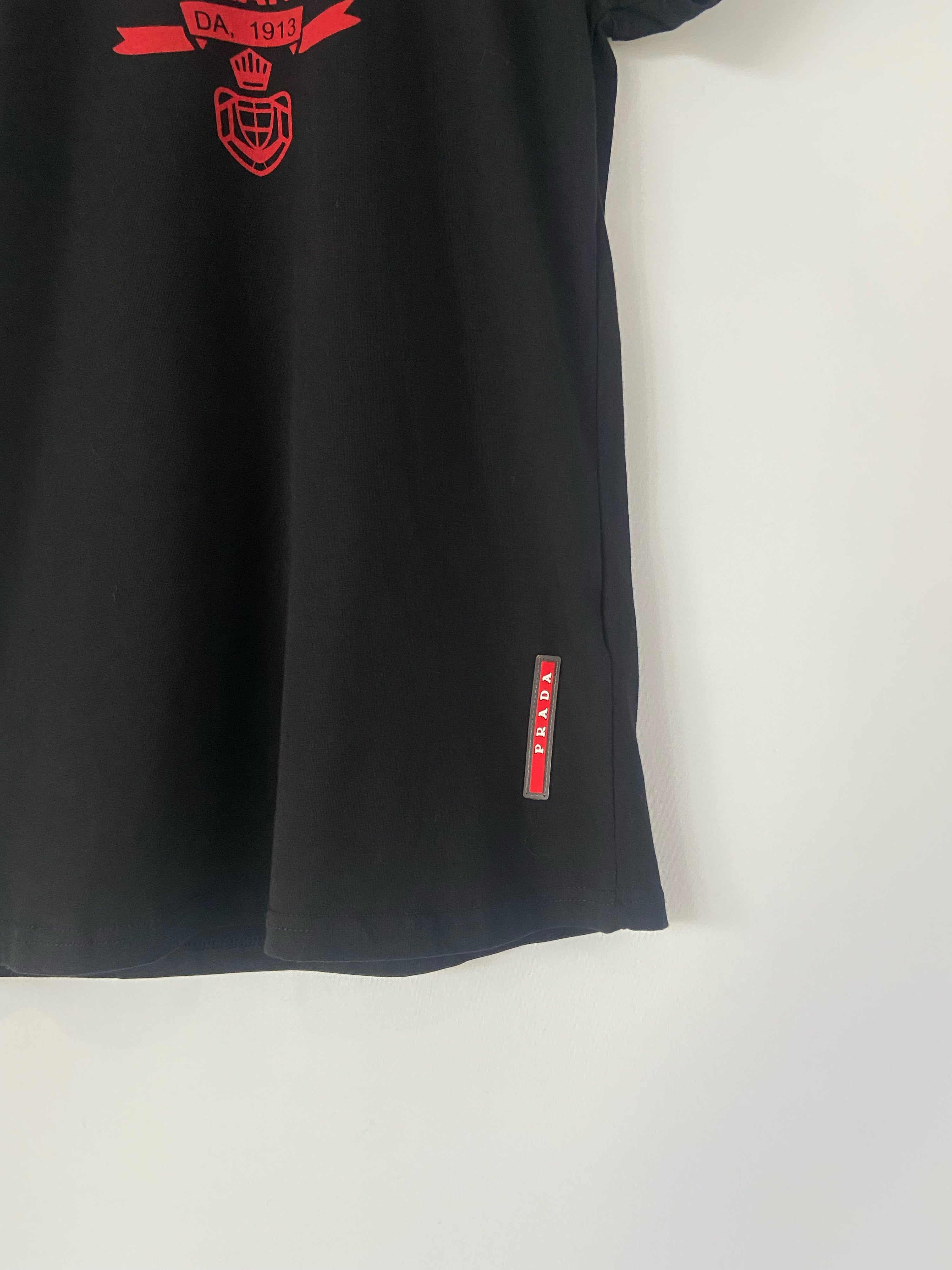 Prada Milano Black Logo T-Shirt with Red Lettering