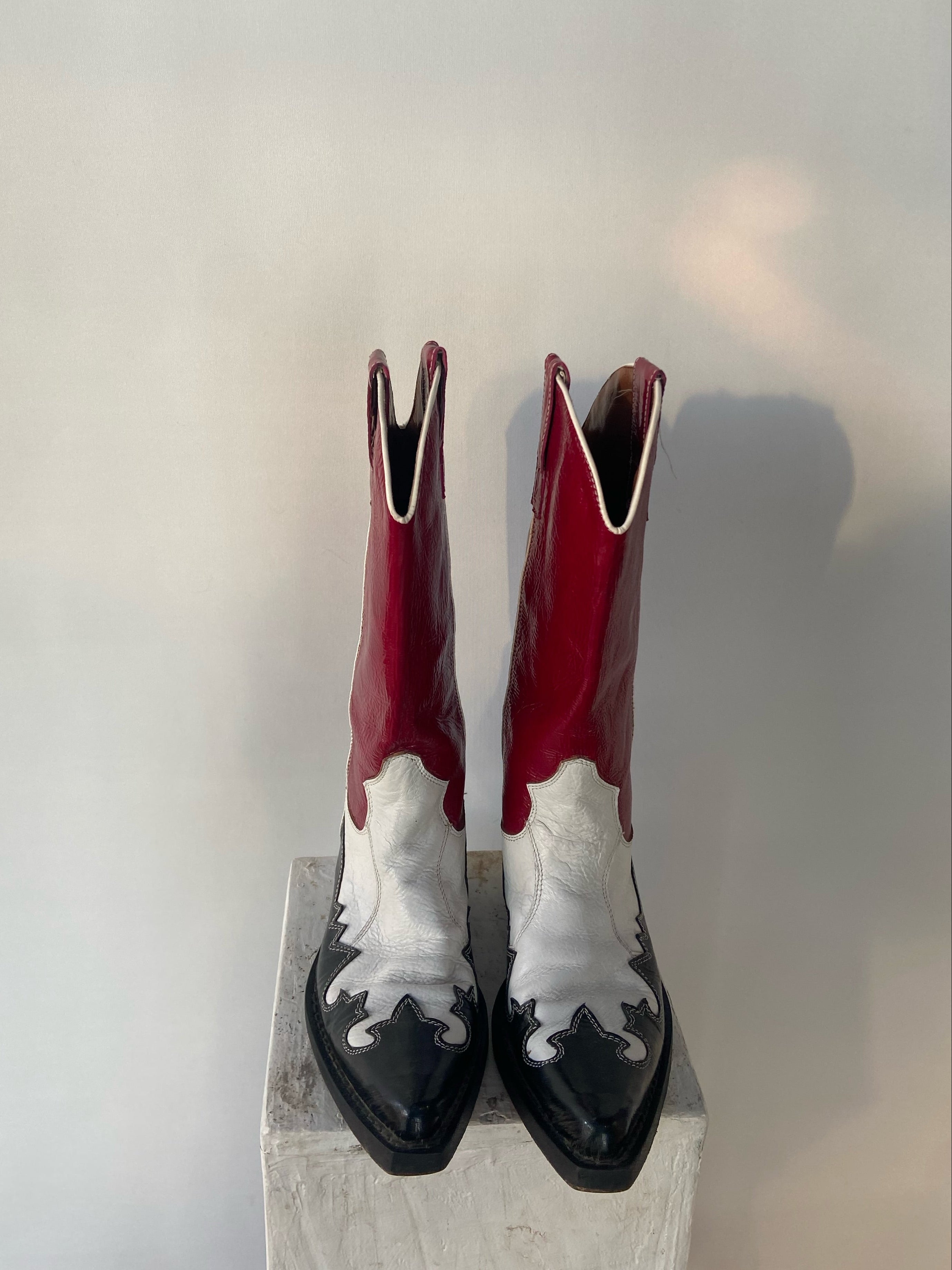 Vintage Western Cowboy Boots in Black, White & Red – Size EU 36